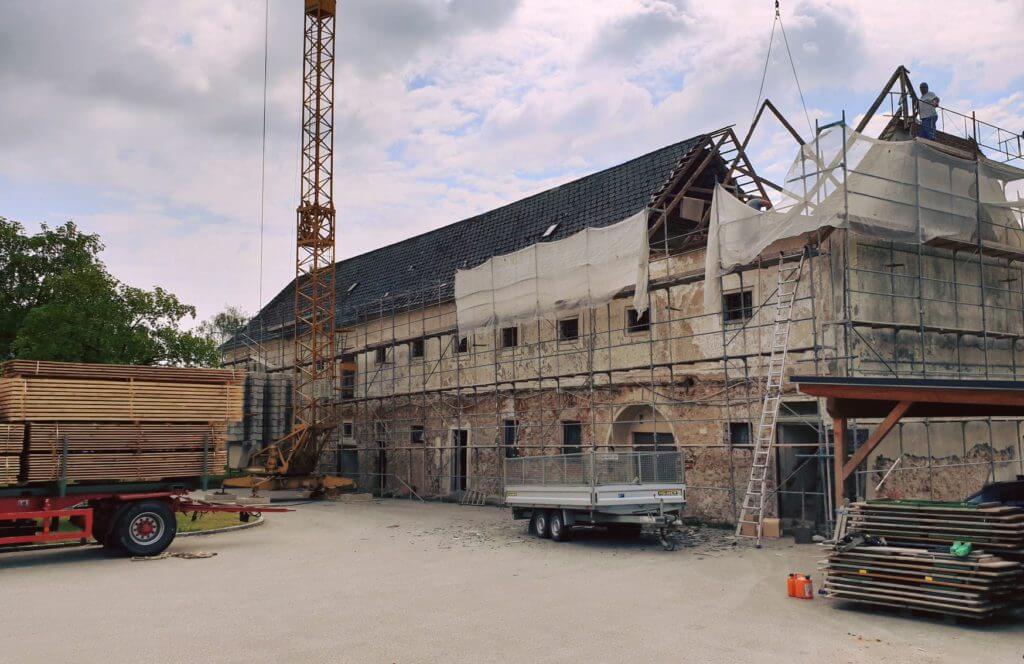 Der Umbau unseres Pfarrzentrums ist in vollem Gange und seit ein paar Wochen geht es rund! Viele helfende Hände haben in freiwilliger Arbeit den Putz von den Mauern des Wirtschaftsgebäudes entfernt und die Brandschutzdecke abgetragen. Die Jungschar hilft natürlich mit wo sie kann. Aktuell wird das Dach des Wirtschaftsgebäude erneuert.