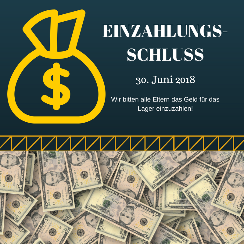Am 30. Juni 2018 war bereits der Einzahlungsschluss fürs Jungscharlager. Wir bitten Sie den Betrag verlässlich so bald wie möglich einzuzahlen. Vielen Dank!